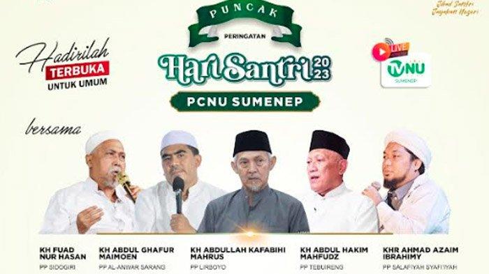 TRIBUNJATIM.COM, SUMENEP - Lima Kiai khos dari Jawa Timur (Jatim) dan Jawa Tengah (Jateng) akan hadir ke Sumenep pada puncak peringatan Hari Santri Tahun 2023 oleh Pengurus Cabang Nahdlatul Ulama (PCNU) Sumenep pada 31 Oktober 2023.