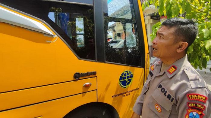 “Bus mereka dilempari batu. Dengan kejadian itu, penyelidik dari Satreskrim Polres Ponorogo maupun polsek jajaran melakukan penyelidikan,” katanya.