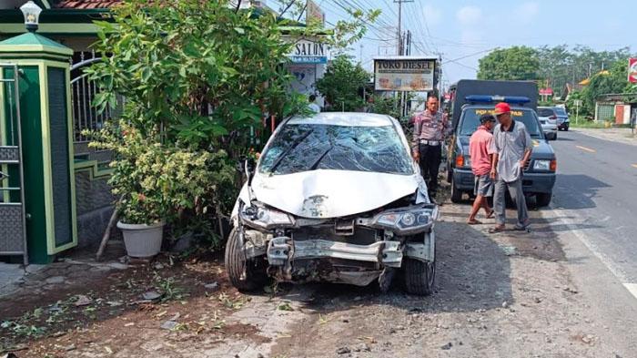 Kecelakaan di Kediri, melaju terlalu ke kanan, mobil tabrak dua motor, pengendara motor terpelanting ke aspal jalan dan alami luka-luka.