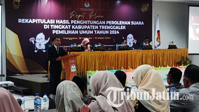 TRIBUNJATIM.COM, TRENGGALEK - KPU Trenggalek telah merampungkan rekapitulasi hasil penghitungan perolehan suara Pemilu 2024 tingkat kabupaten, Kamis (29/2/2024) tengah malam.