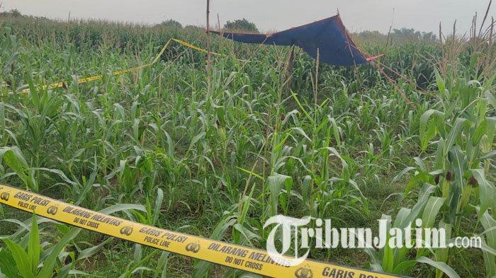 Janda tiga anak di Nganjuk ditemukan tewas di area persawahan, kepala korban alami luka hingga keluarkan darah.