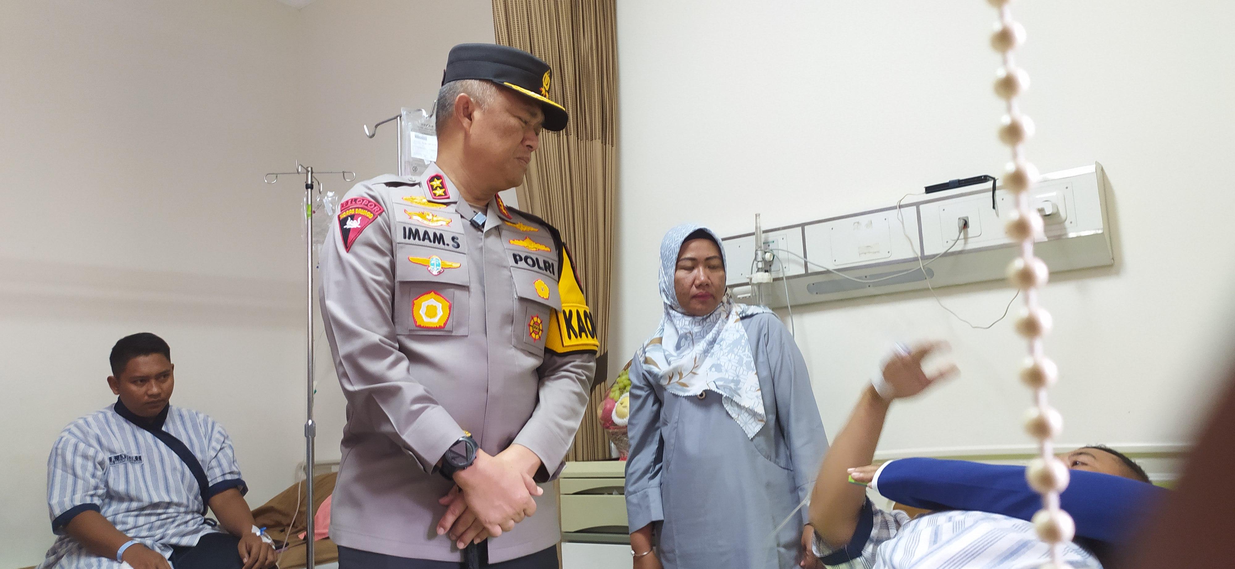 Irjen Pol Imam juga mendatangi beberapa orang personel yang dirawat di beberapa ruangan kamar instalasi rawat inap lantai tiga RS Bhayangkara Surabaya.