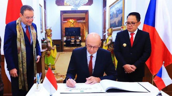 TRIBUNJATIM.COM, SURABAYA - Pj Gubernur Jawa Timur Adhy Karyono menerima kunjungan kerja Duta Besar (Dubes) Republik Ceko untuk Indonesia Jaroslav Dolecek di Gedung Negara Grahadi, Kamis (7/3/2024).
