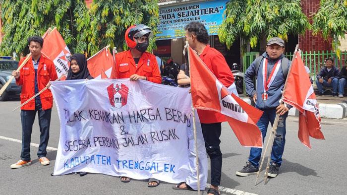 Demo di Gedung DPRD, GMNI Soroti Kenaikan Harga Beras dan Jalan Berlubang di Trenggalek: Sengsara