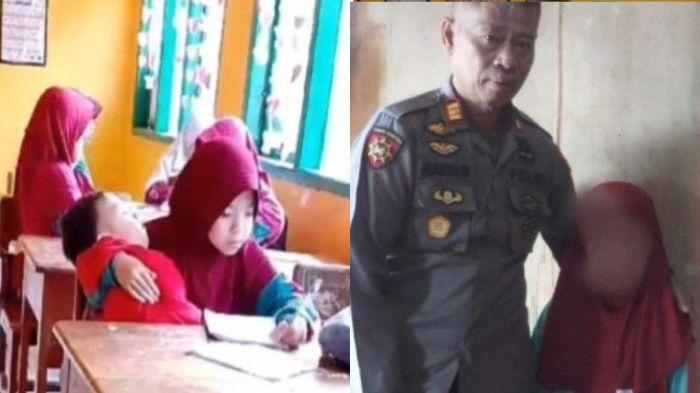 Kondisi Bocah SD Asuh Adiknya Sambil Belajar di Sekolah, Kades Ungkap Sebab, Polisi Beri Bantuan