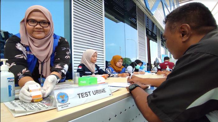 Puluhan Awak Bus di Terminal Patria Blitar Jalani Tes Urine di Masa Angkutan Lebaran 2024