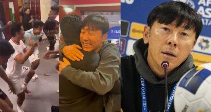 Pelatih Timnas U23 Indonesia, Shin Tae-yong saat timnas U23 Indonesia mengalahkan Korea Selatan di Piala Asia U23 2024, Jumat (26/4/2024), sangat berbahagia.