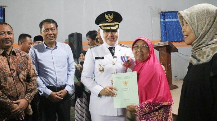 TRIBUNJATIM.COM, MOJOKERTO - Bupati Mojokerto Ikfina Fahmawati menyerahkan langsung Sertifikat Hak Atas Tanah (SHAT) program lintas sektor, untuk 405 pelaku UMKM di Kecamatan Pacet, Kabupaten Mojokerto.