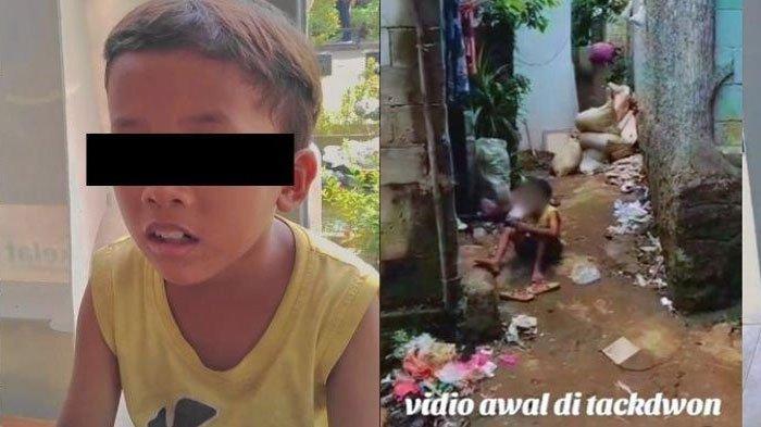 Bocah yang nangis karena kelaparan minta makan tersebut histeris di depan rumahnya.