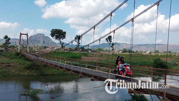 TRIBUNJATIM.COM, TULUNGAGUNG - Jembatan Gantung Kendalbulur di Desa Kendalbulur, Kecamatan Boyolangu, Tulungagung, Jawa Timur (Jatim), menjadi akses penting warga.