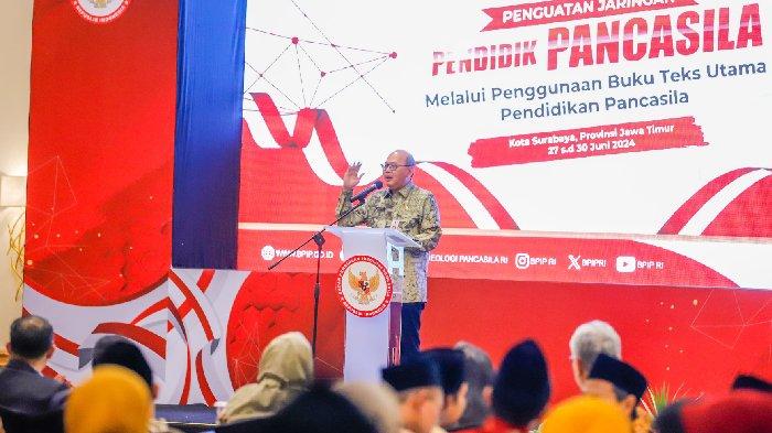 Penegasan ini disampaikan Penjabat (Pj) Sekretaris Daerah Provinsi Jawa Timur Bobby Soemiarsono saat hadir dalam acara Penguatan Jaringan Pendidikan Pancasila melalui Penggunaan Buku Teks Utama Pendidikan Pancasila di Shangri-La Hotel Surabaya, Jumat (28/6/2024).