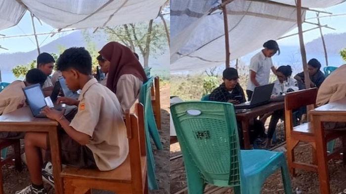 Internet Lemot, Puluhan Siswa SMP Terpaksa Ujian di Atas Bukit, Dinas Pendidikan: Inilah Kondisi