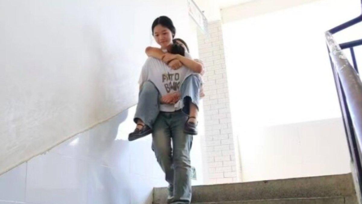 Tiap hari gadis 13 tahun gendong teman lumpuh dari rumah ke sekolah. Dua gadis itu adalah Kuang Yuxuan dan sahabatnya Liu Sihan