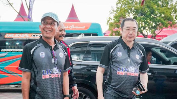 Setyo Wahono mendampingi Sekretaris Jendral (Sekjen) PBVSI, Heyzer Harsono untuk menyaksikan laga final Livoli Divisi Utama 2024