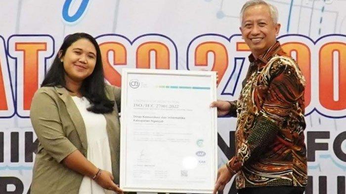 TRIBUNJATIM.COM, NGANJUK - Pemerintah Kabupaten (Pemkab) Nganjuk baru-baru ini menerima Sertifikat SNI ISO 27001:2022.