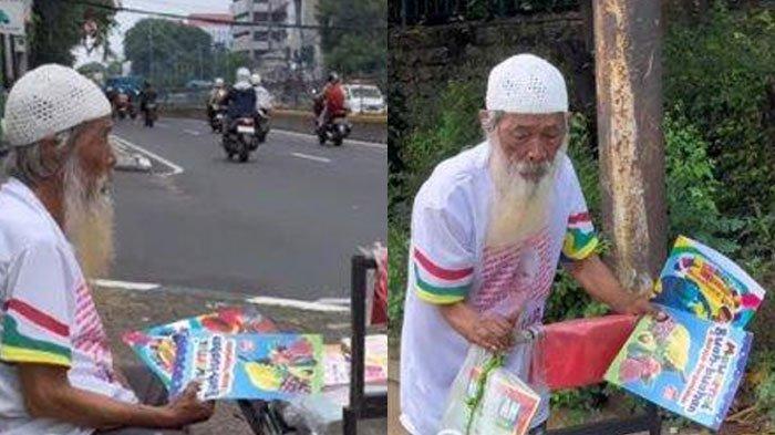 Jual Buku Gambar, Mbah Husen Andalkan Untung Rp5000 Demi Hidupi Cucu, Makan 1 Nasi Bungkus Dibagi 2