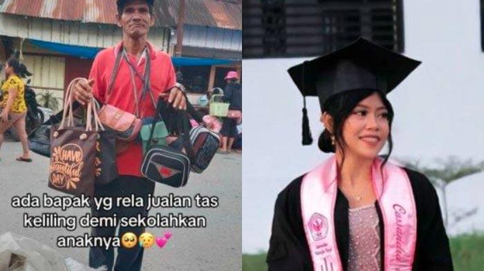 TRIBUNJATIM.COM - Tengah viral di media sosial anak penjual tas keliling lulus sarjana.
