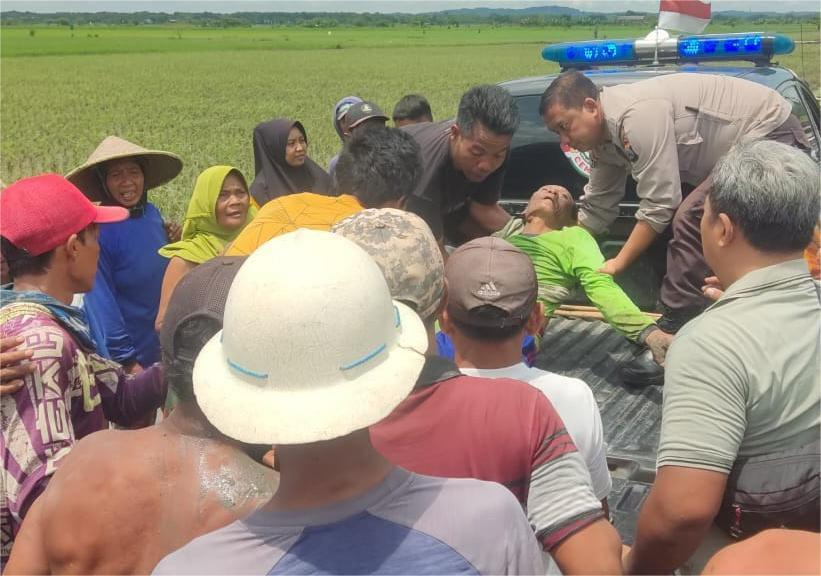 Solikin ditemukan oleh warga sekitar sudah tergeletak tidak bernyawa di tengah area persawahan.