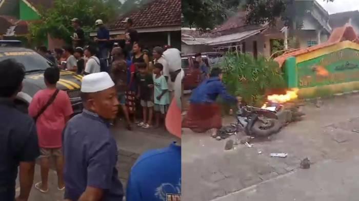 Sembunyi di Masjid, Maling di Jember Babak Belur Dihajar Warga, Motornya Dibakar Sisakan Rangka