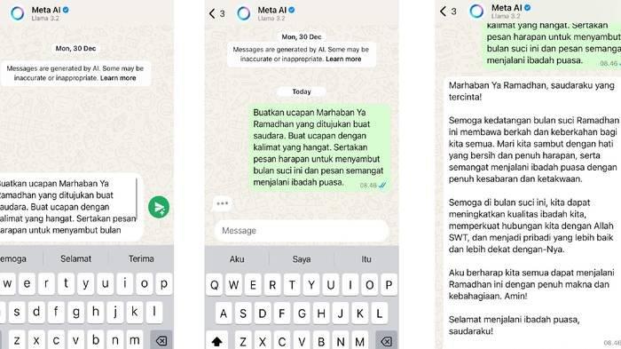 Pengguna bisa membuat kata-kata menyambut bulan Ramadan 2025 secara otomatis melalui berbagai program chatbot Artificial Intelligence (AI), salah satunya yang mudah diakses adalah Meta AI di WhatsApp.