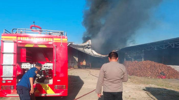 Kebakaran terjadi di pabrik pengolahan kelapa yang berlokasi di Desa Kedamean, Kecamatan Kedamean, Kabupaten Gresik