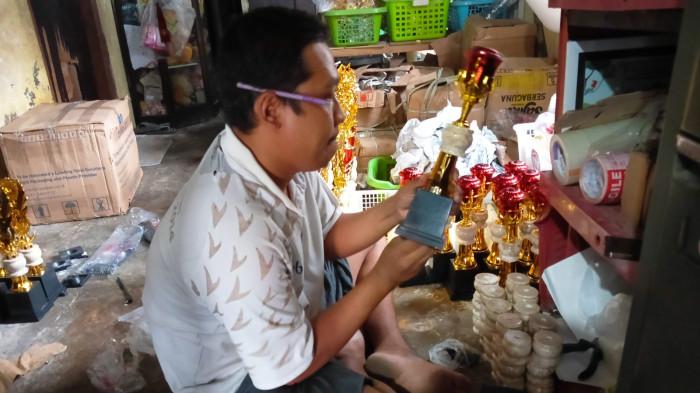Perajin piala Anggoro Adi Satriya (39), warga Desa Balongbesuk, Kecamatan Diwek, Kabupaten Jombang, bulan kemerdekaan adalah musim panen rezeki