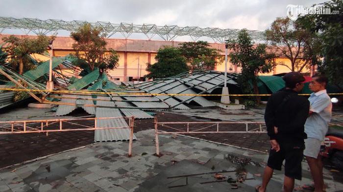 - Atap tribun penonton Stadion Gelora Penataran di Kecamatan Nglegok, Kabupaten Blitar, Jawa Timur roboh diterjang angin kencang