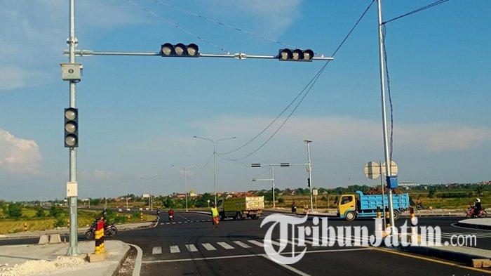 TRIBUNJATIM.COM, LAMONGAN - Dua titik persimpangan Jalan Lingkar Utara (JLU) Balun-Sukorejo, Dlanggu-Sidokumpul, Lamongan, Jawa Timur, kini dipasangi Alat Pemberi Isyarat Lalu Lintas (APILL), Selasa (14/10/2025).