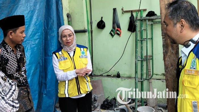 TRIBUNJATIM.COM, JOMBANG - Direktur Jenderal (Dirjen) Cipta Karya Kementerian Pekerjaan Umum Republik Indonesia (PU RI), Dewi Chomistriana, meninjau kondisi bangunan di Pondok Pesantren (Ponpes) Mambaul Maarif Denanyar, Kecamatan Jombang, Kabupaten Jombang, Jawa Timur, Kamis (9/10/2025).