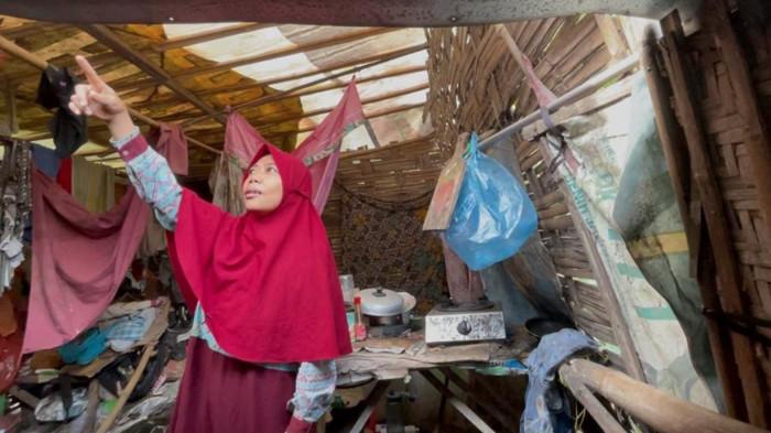 - Kondisi Tempat Tinggal: Gubuk reot berdinding bambu/triplek ditambal banner dan atap bocor parah.