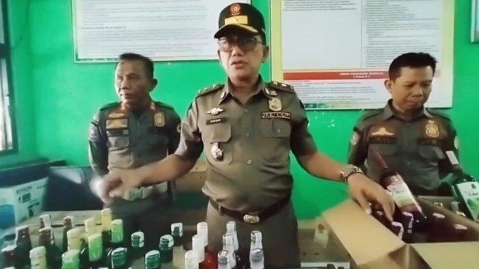 - Petugas menyita ratusan botol miras berbagai merek dan jenis.