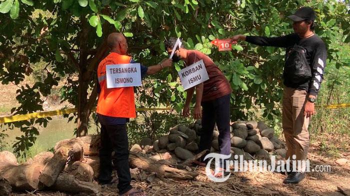 Satreskrim Polres Ponorogo gelar rekonstruksi adik, Ismono bunuh kakak, Ismu di Dukuh Mitir, Desa Karangjoho, Kecamatan Badegan, Kabupaten Ponorogo.