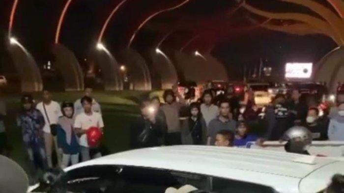 Viral video yang merekam momen sebuah mobil menjadi sasaran amukan massa di dekat patung belalai pintu masuk Perumahan Citraland.