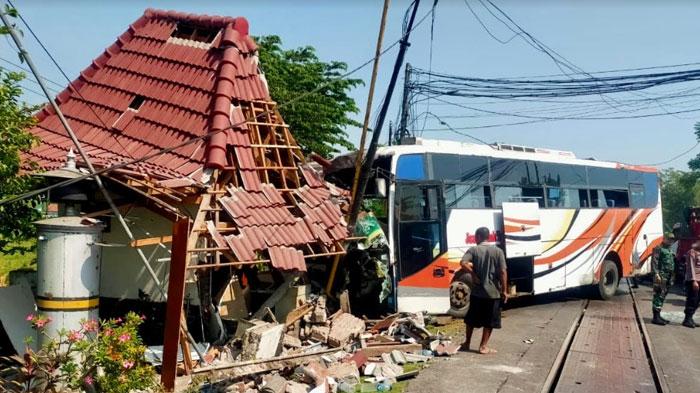 Baut As Roda Depan Lepas, Bus Jawa Indah Seruduk Pos Perlintasan KA di Pasuruan, 1 Pemotor Terluka