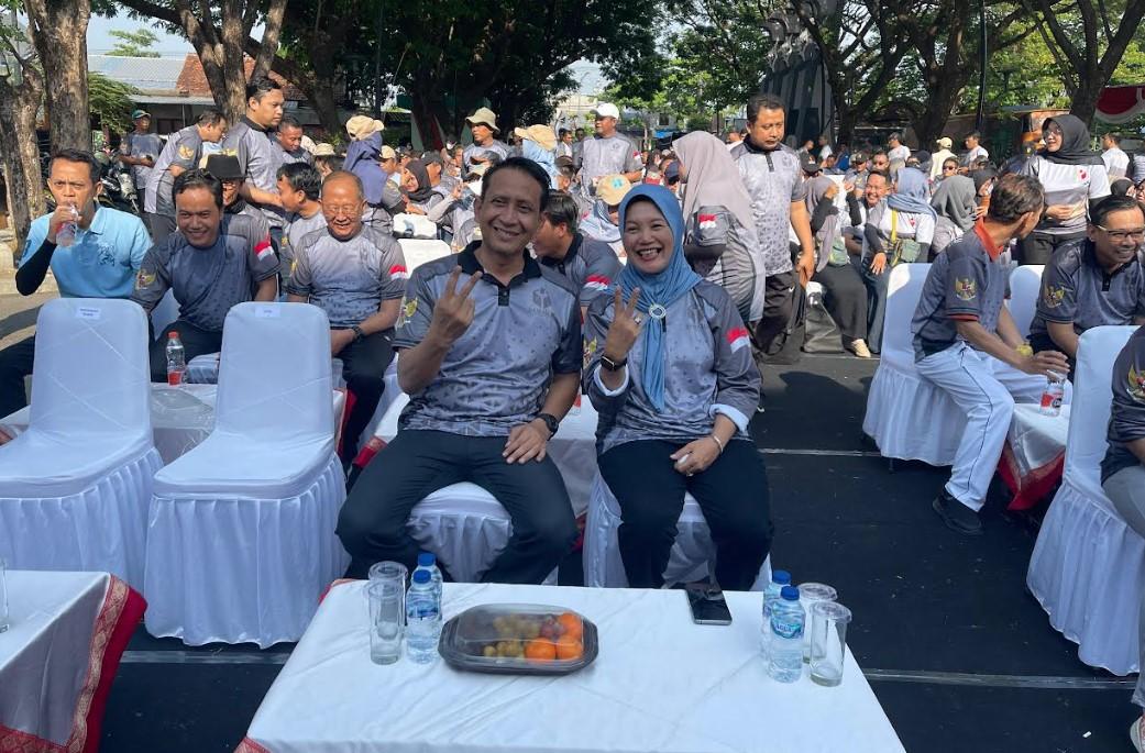 Calon Bupati dan Wakil Bupati Nomor Urut 2, Setyo Wahono-Nurul Azizah menghadiri deklarasi Pilkada Damai 2024 yang digelar Badan Pengawas Pemilu