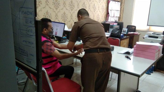 Tersangka kasus dugaan korupsi penggelapan barang sitaan Satpol PP Surabaya Ferry Jocom melaporkan atasannya ke Kejaksaan Negeri Surabaya