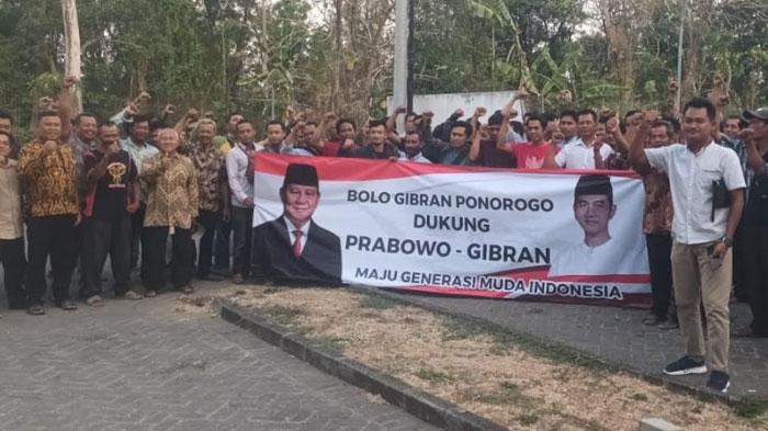 Ratusan relawan yang tergabung dalam Relawan Wong Ndeso Ponorogo melakukan deklarasi mendukung Prabowo-Gibran sebagai Capres Cawapres 2024.