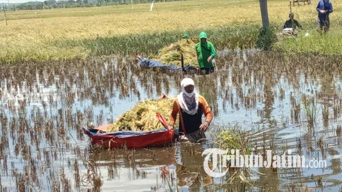 Sawah Terendam Air Berhari-hari, Petani di Tuban Pilih Panen Dini, Hindari Kerugian Besar