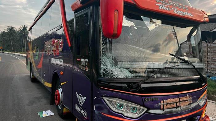 Minibus rombongan ziarah dilempari batu orang tak bertanggungjawab hingga akhirnya oleng ke parit di Trenggalek.