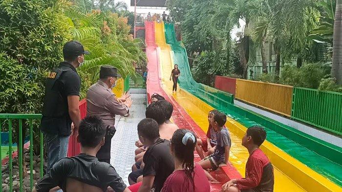 Saksi mata pengunjung mengungkap kronologi patahnya seluncur kolam renang wahana bermain air di destinasi wisata kawasan Kenjeran, Surabaya, Sabtu (7/