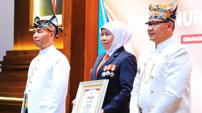 Kontribusi Dukung Kemajuan Kota Batu, Gubernur Khofifah Terima Lencana Hakaryo Guno Mamayu Bawono