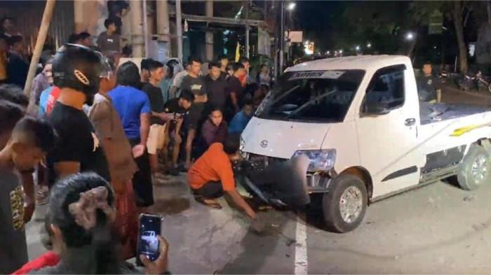 Sebuah mobil pikap menabrak motor terjadi di Jalan Niken Gandini, Kelurahan Singosaren, Kecamatan Jenangan, Kabupaten Ponorogo, Jatim.