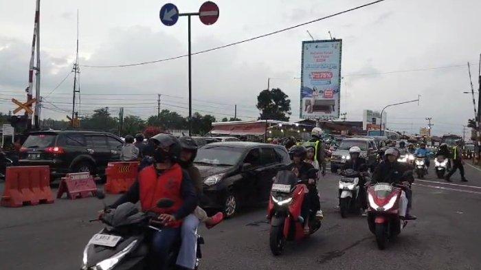 Kendaraan di Simpang Tiga Mengkreng Kediri Padat H+1 Lebaran, Polisi Lakukan Rekayasa Lalu Lintas
