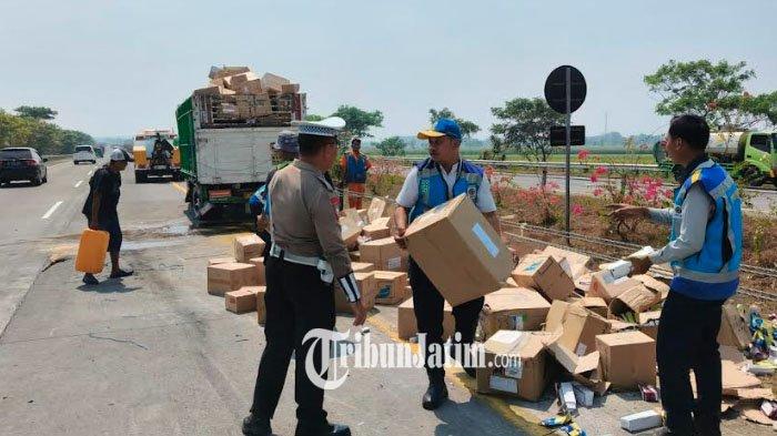 Terungkap kronologi tergulingnya truk bak terbuka muatan pasokan obat-obatan medis dalam wadah kemasan kardus di Tol Surabaya-Mojokerto