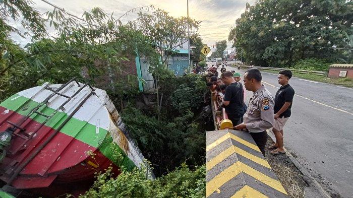truk tangki terjun ke Sungai di Ngawi