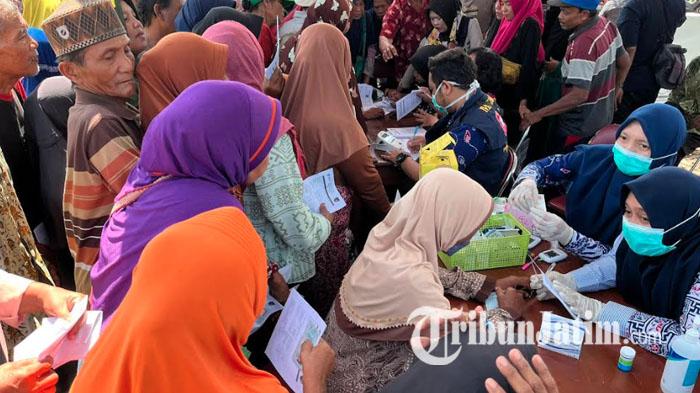 Ratusan warga berbondong-bondong ikut cek kesehatan gratis yang digelar Dinkes Kabupaten Kediri dalam rangkaian TMMD ke-122 di Desa Pagung.