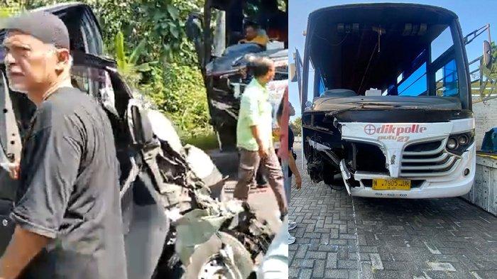 Terjadi kecelakaan di Bondowoso, niat menyalip truk, Bus Hino menabrak mobil Gran Max Box, sopir terjepit.